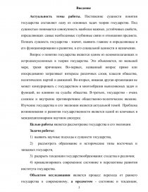 Актуальность темы работы. Постижение сущности понятия государства составляет одну из основных задач теории государства. Под сущностью понимается совокупность наиболее важных, устойчивых свойств, определяющих самые необходимые глубинные связи и отношения предмета. Познать сущность государства - значит, выявить главное и определяющее в его функционировании и развитии, в его социальной ценности и назначении.