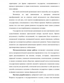 Объектом исследования является процесс перехода от раннего государства к современному, а предметом - состояние и тенденции, характерные для формы современного государства, складывающиеся в процессе проводимых в стране политических, экономических, социальных и иных реформ.