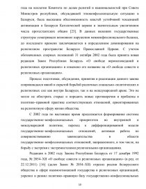 2.2 Конституционно–правовые основы взаимодействия государства и церкви в Республике Беларусь………………………………………………... | 23 | |