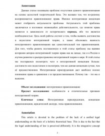 Предмет исследования: особенности и отличительные признаки интегративной теории.