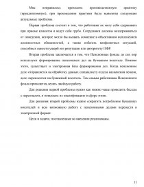 - формирования общего представления об организационной структуре и деятельности организации, а так же деятельности отдельных структурных подразделений, отделов ПФР и органа социальной защиты;