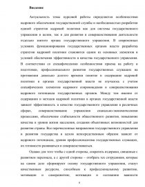 Актуальность темы курсовой работы определяется особенностями кадрового обеспечения государственной службы и необходимостью разработки единой стратегии кадровой политики как для системы государственного управления в целом, так и для развития и совершенствования деятельности отдельно взятого органа государственного управления. В современных условиях функционирования государственных органов власти разработка стратегии кадровой политики становится одним из основных элементов и условий обеспечения эффективности и качества государственного управления. В соответствии со специфическими особенностями приема на работу и подготовки, профессионального развития государственных служащих на протяжении довольно долгого времени понятие и содержание кадровой политики в органах государственной власти не изучалось с учетом специфических элементов кадрового сопровождения и совершенствования кадрового потенциала государственных органов. Между тем именно от содержания и методов кадровой политики в органах государственной власти зависит эффективность и качество государственного управления в различных сферах, совершенствование управления социально-экономическими процессами, обеспечение стабильности общественного развития, повышение качества и уровня жизни населения, создания объективных возможностей для развития страны. Все перечисленные направления государственного управления и развития государства в целом непосредственным образом зависят от кадрового потенциала, уровня профессионализма государственных служащих, их готовности развиваться и совершенствоваться.