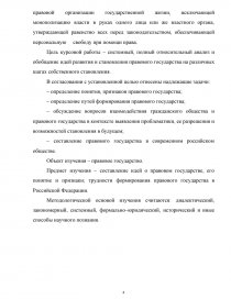 Цель курсовой работы – системный, полный относительный анализ и обобщение идей развития и становления правового государства на различных шагах собственного становления.