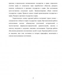 Изучение процесса происхождения государства и права имеет не только чисто познавательный, академический, но и политико-практический характер. Оно позволяет глубже понять социальную природу государства и права, их особенности и черты, дает возможность проанализировать причины и условия их возникновения и развития. Позволяет четче определять все свойственные им функции — основные направления их деятельности, точнее установить их место и роль в жизни общества и политической системы. Актуальность темы: как показал проведенный анализ научных публикаций, происхождение государства и права было и остается традиционным объектом исследовательского внимания ученых – философов, социологов, политологов, экономистов, правоведов, психологов. Большое количество публикаций, посвященных проблемам понимания происхождения государства и права, их сущности и закономерностей развития, объясняется, на наш взгляд, тем, что «нынче в России налицо кризис прежних представлений» и если в советской науке представления о государстве и праве опирались на марксистско-ленинскую идеологию, где государство понималось как машина, орудие для насилия одного класса над другим, то в настоящее время становится актуальным не столько описание классовой сущности государства, сколько всестороннее раскрытие его многогранного социального назначения, структурной и территориальной организации, других важных сторон жизни современного государства. Несмотря на это, до сих пор дискуссионными остаются такие вопросы, как происхождение государства и права, основные признаки, сущность, назначение и другие. Все сказанное подчеркивает актуальность выбранной темы. Итак, тема курсовой работы «Происхождение государства и права». Объектом исследования данной работы является такие явления общественной жизни, как государство и право. Предметом исследования является процесс происхождения государства и права. Цель и задачи курсовой работы: выявить основные причины и предпосылки возникновения государства и права, определить отличия права от социальных норм первобытного общества, раскрыть понятия, особенности и признаки государства и права. Для достижения цели поставлены следующие задачи: Проанализировать общие понятия государства и права; Провести анализ теорий происхождения государства и права; Раскрыть признаки государства и права.