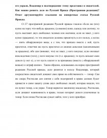- убийства. Пространная редакция Русской правды выделяет следующие статьи, посвященные убийству: ст.3 – убийство княжеского «мужа» (здесь стоит понимать любого человека из княжеской «администрации»); ст. 6 – убийство во время ссоры; ст. 7 – разбойное убийство; ст. 11 – убийство княжеского отрока, повара; ст. 15 – убийца ремесленника; ст. 16 и ст. 89 – убийство холопа или рабыни; ст. 88 – убийство женщины. По статьям, посвященным убийству, можно отметить следующие характеристики: классовый характер, различная система наказаний.