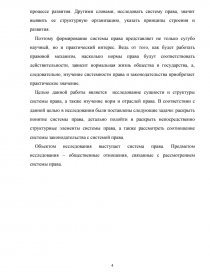 Объектом исследования выступает система права. Предметом исследования – общественные отношения, связанные с рассмотрением системы права.