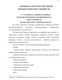 2.1. Уголовная, административная, гражданско-правовая, дисциплинарная ответственность по российскому законодательству………….18
