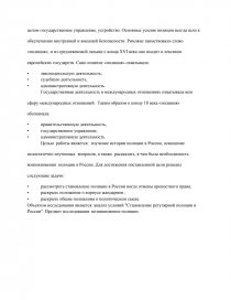 Актуальность изучения становления и развития полиции России в последние годы все более осознается отечественными учеными ввиду наличия серьезной пробельности в знаниях по данной теме, а также необходимости поиска путей последующего совершенствования современной системы правоохранительных органов в контексте проводимой административной реформы. Несмотря на нарастание исследовательского интереса, проблема периодизации истории российской полиции по-прежнему остается дискуссионной. Государство изучает развитие механизмов государственной власти, институты и нормы права, а так же в первую очередь историческое развитие юриспруденции. До конца второго десятилетия XVIII века в России не было регулярных полицейских органов. Иностранный термин «полиция» и вовсе не употреблялся. В допетровской Руси данная деятельность обозначалась понятием «благочиние». Вследствие отмены крепостного права, в стране был постепенно реформирован полицейский аппарат. До события 9 февраля (3 марта) 1861 года крестьяне находились под наблюдением помещиков и общество не нуждалось в полицейском аппарате. Поэтому полицейские отряды были только в городах. После событий 1861 года положение изменилось и появилась потребность в увеличении полицейского аппарата. Полиция находилось под управлением департамента министерства внутренних дел. В системе органов власти России традиционно принадлежит органам внутренних дел. Доказательством этого является история нашей страны. Основные органы внутренней власти направлены на: