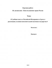 «Судебная власть в Российской Федерации и её роль в реализации уголовно-исполнительной политики государства.»