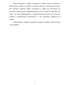 Однако любые практические исследования в области права будут опираться, прежде всего, на положения теории государства и права, или общей теории права и государства. Это означает, что сама теория как дисциплина имеет собственную методологию, а также концепт для практического применения ее, т.е. для нее будут характерны черты метатеории[2].