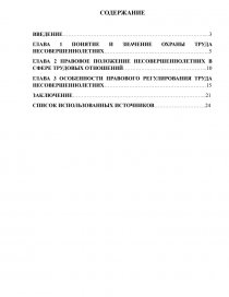 ГЛАВА 3 ОСОБЕННОСТИ ПРАВОВОГО РЕГУЛИРОВАНИЯ ТРУДА НЕСОВЕРШЕННОЛЕТНИХ…………………………………………………15