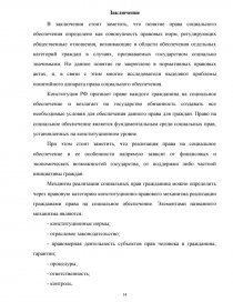 Таким образом, право социального обеспечения является одним из ключевых направлений, непосредственно связанных с гражданами РФ. Поскольку в РФ признаются и гарантируются права и свободы человека и гражданина согласно общепризнанным принципам и нормам международного права и в соответствии с настоящей Конституцией (часть 1 статьи 17 Конституции РФ), то право социального обеспечения должно быть гарантировано государством и должно совершенствоваться.