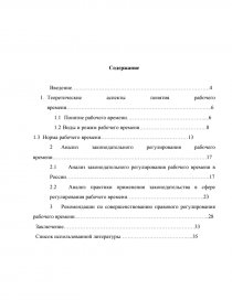 Цель работы – исследование правового регулирования рабочего времени, анализ и разработка рекомендаций по совершенствованию правового регулирования рабочего времени.
