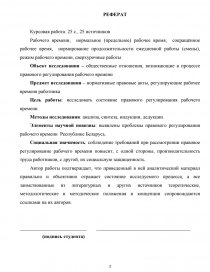 Элементы научной новизны: выявлены проблемы правового регулирования рабочего времени Республике Беларусь.