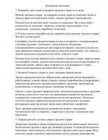 1. Розкрийте зміст поняття функцій трудового права та їх видів.