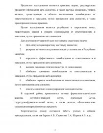 Объектом исследования выступают правоотношения, возникающие в процессе освобождения от ответственности и наказания, применяя акта амнистии.
