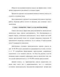 Предметом курсового исследования являются понятие умысла, его сущность и основные виды.