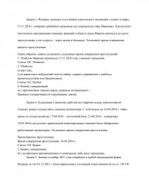 Задача 3. Федоров, находясь в состоянии алкогольного опьянения с ножом в парке, 15.11.2016 г. совершил разбойное нападение на супружескую пару Ивановых. В результате полученных проникающих ножевых ранений в область груди Иванов скончался на месте преступления, а его супруга – через месяц в больнице. Установите время совершения каждого преступления.