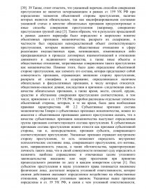 Актуальность исследования. В последние время проблемы борьбы с мошенничеством стали весьма актуальны. Феномен мошенничества традиционно рассматривается как часть теневой экономики, оказывающей огромное влияние на благополучие большей части населения страны. С переходом к отношениям в сфере рынка, разнообразию видов собственности и свободе предпринимательской деятельности значительно повысилась и активность людей, как в дозволяемых формах, так и в рамках криминальных способов ведения бизнеса и обогащения. В условиях мирового экономического кризиса, стремительно развивающейся инфляции, и правовой нестабильности ущерб от экономических преступлений подсчитывается миллионами рублей. Виды экономических преступлений изменяются, приобретают новые, порой еще невиданный, качественные формы. И сейчас существуют лица, которые наживаются на обмане при размене валюты и денег, на использовании «кукол» и т.д. Все установленные виды мошенничества, скорее всего, будут иметь место еще длительное время. Однако рынок создал и, сделал возможность проявление новых форм мошенничества. Такие как мошенничества в сфере банковских услуг (хищение путем незаконного получения кредитов, использование поддельных извещений об исполнении расчетной или товарной операции «Авизо» и т.д.), мошенничество в сфере компьютерных технологий и страхования, мошенничество при совершении сделок с недвижимым имуществом граждан, в том числе ипотечном кредитовании, в сфере малого бизнеса, и многое другое. Согласно статистическим данным, представленным Генеральной Прокуратурой РФ в 2020 году зарегистрировано 257187 преступлений в форме мошенничества, предусмотренных ст. 159 – 159. 6 УК РФ, прирост которых по сравнению с предшествующим годом составил + 19%. 4 Исходя из представленных данных, можно увидеть, что число зафиксированных преступлений значительно выросло, государству необходимо выработать действенные механизмы защиты собственности, что напрямую связано с анализом теоретических положений. Кроме того, мошенничество связано с изобретением новых способов и средств совершения преступления, именно с этим, по мнению исследователей в этой области, напрямую связана его латентность [27]. Приведенные цифры свидетельствуют о том, что рассматриваемый вид преступления достаточно распространен, ежегодно регистрируется около двухсот тысяч таких деяний. Именно этот факт и привлекает исследователей, в связи с чем, мошенничеству как виду преступления посвящено достаточно большое количество трудов. Уделяется внимание рассматриваемому составу и законодателем, который стремится совершенствовать нормы Уголовного кодекса, дифференцируя разные виды мошенничества. Несколько лет назад был введен ряд новых статей в Особенную часть УК РФ, каждая из которых регулирует отдельный вид мошенничества, кроме того, изменениям подверглась и ст. 159 УК РФ, устанавливающая ответственность за «классическое мошенничество». Однако, указанные меры не разрешили всех проблем квалификации рассматриваемого преступления. Многочисленные проблемы возникают при квалификации мошенничеств, отграничении уголовно – наказуемых деяний от гражданских правоотношений, а также от иных видов преступления. Это, с нашей точки зрения, преимущественно обусловлено тем фактом, что нормы, предусматрива