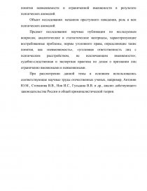 5) рассмотреть психологические особенности лиц с психическими аномалиями, совершивших насильственные преступления, чтобы выявить понятия невменяемости и ограниченной вменяемости в результате психических аномалий.