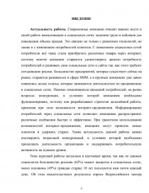 Актуальность работы. Современные компании отводят важное место в своей работе коммуникации в социальных сетях: ведению групп и пабликов для повышения объема продаж. Это связано не только с развитием технологий, но также и с изменением потребностей клиентов. С появлением социальных сетей потребители всё чаще стали приобретать различные товары через интернет, поэтому многие компании стараются удовлетворить данную потребность потребителей и развивать свои социальные сети и сайты так, как этого требуют сегодняшние реалии. Большинство предприятий, которые существует сейчас на рынке, стараются развиваться в сфере SMM, а в крупных компаниях уже давно появились целые отделы, которые занимаются деятельностью по продвижению в социальных сетях. Помимо изменившихся ожиданий потребителей, на рынке возросла конкуренция, в условиях которой компаниям необходимо функционировать, поэтому они разрабатывают стратегии дальнейшей работы, применяя при этом возможности интернет-продвижения. Информирование потребителей через социальные сети позволяет компаниям распространять различные сообщения быстро и эффективно. При грамотном использовании возможностей интернет-продвижения, компании могут привлечь новых клиентов и удержать старых. Также актуальность данной работы можно подтвердить возросшей конкуренцией, в условиях которой необходимо продолжать деятельность организации и поддерживать потребительскую активность на нужном уровне.