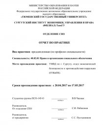 Место прохождения практики: УМВД по г. Сургуту, отдел экономической безопасности и противодействия коррупции (ОЭБиПК).