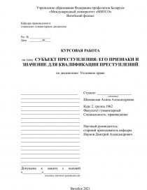 на тему: СУБЪЕКТ ПРЕСТУПЛЕНИЯ: ЕГО ПРИЗНАКИ И ЗНАЧЕНИЕ ДЛЯ КВАЛИФИКАЦИИ ПРЕСТУПЛЕНИЙ