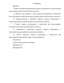 Целью исследования дипломной работы является анализ тактических особенностей проведения допроса потерпевших и свидетелей при расследовании преступлений против личности.