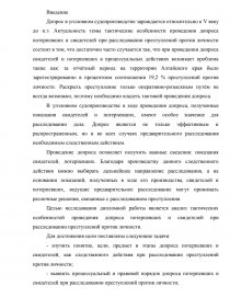 Допрос в уголовном судопроизводстве зарождается относительно к V веку до н.э. Актуальность темы тактические особенности проведения допроса потерпевших и свидетелей при расследовании преступлений против личности состоит в том, что достаточно часто случаются так, что при проведении допроса свидетелей и потерпевших в процессуальных действиях возникает проблема такие как: за отчётный период на территории Алтайского края было зарегестрированно в процентном соотношении 19,2 % преступлений против личности. Раскрыть преступление только оперативно-розыскным путём не всегда возможно, поэтому необходимо владеть тактикой проведения допроса.