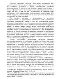 Ряд авторов, рассуждая о цифровизации в уголовном судопроизводстве, о перспективах воплощения идей электронного уголовного производства, говорят о том, что цифровизация явление несомненно перспективное и многогранное, которое открывает большие горизонты возможностей, однако, оно также несет определённые угрозы и риски.[2] К рискам можно отнести вопрос обеспечения секретности электронного документооборота. В том случае, если преступник сумеет получить доступ к вышеупомянутым системам, а в его распоряжении окажутся не просто отдельные не связанные документы, а уже массивы уголовно-процессуальных материалов, уголовных дел, что может привести к серьезным последствия для всей уголовно-правовой системы. Поэтому прежде чем проводить цифровые реформы, необходимо продумать меры защиты хранящихся электронных данных.