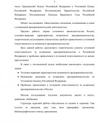 Предмет работы: нормы уголовного законодательства России, уголовно-правовая характеристика незаконного предпринимательства, теоретические исследования относительно проблем привлечения к уголовной ответственности за незаконное предпринимательство.