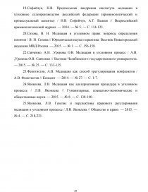 Так, вопросы применения института медиации в уголовном производстве России и использования мер восстановительного производства рассматриваются в трудах таких ученых, как: Л. M. Карнозова, О.В. Карягина, Э.Б. Мельникова, Г.Н. Ветрова, З.Х. Хидзева и др. Данный вопрос в своей научной деятельности поднимают доктора юридических наук Л. А. Воскобитова и Л.В. Головко.