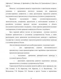 Предметом исследования нормы уголовно-процессуального законодательства, содержащие предпосылки к использованию медиации в российском уголовном процессе, научные исследования в области восстановительной юстиции и медиации, а также практика применения медиации для разрешения уголовно-правовых конфликтов в России и за рубежом.