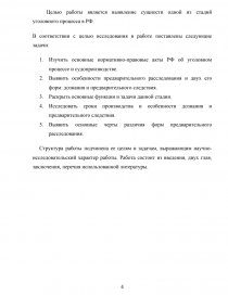 Объектом исследования является предварительное расследование и его формы в уголовном процессе РФ, предметом исследования – задачи предварительного расследования, общие черты и различия его форм.
