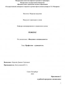 - Составляющие профессии «Судоводитель» …………………………………..стр. 4.