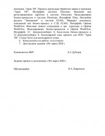 - Перечень графического материала: Организационная структура компании “Ария ТВ”, Процесс-процедура обработки заявки в компании “Ария ТВ”, Интерфейс системы Directum, Внешний вид регистрационных карточек в системе Directrum, Моделирование бизнес-процессов в системе Directrum, Интерфейс Elma, Настройка раздела “Замещение” в системе ELMA, Маршрут документа, описанный как бизнес-процесс в СЭД ELMA, Интерфейс Optima WorkFlow, Внесение нового сотрудника в орг. структуру в Optima WorkFlow, Моделирование бизнес-процессов в Optima WorkFlow, Интерфейс 1С: Документооборот 8, Блок-схема бизнес-процесса в 1С:Документооборот 8, Календарный план проекта для ООО “Ария ТВ”, Схема Ганта для календарного плана