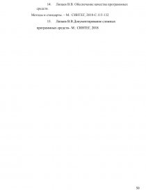 «Документирование программного обеспечения : В помощь техническому писателю», Г.С. Иванова «Технология программирования. Проектирование. Комплексное тестирование. Программная документация», а также различных научных статьях, К.А. Валеев и В.Н. Квасницкий «Стандарты программной