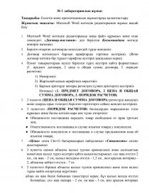 Жұмытың мақсаты: Microsoft Word мәтіндік редакторымен жұмыс жасай білу