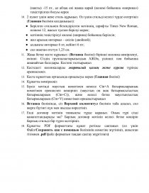 абзац оң жақ бқлік бойынша теңестірлуі керек, бұл қызыл жолда отступ болмайды, сол жақ шекара - 2 см, оң жақ - 3 см, жол аралық интервал (нақты) -15 пт., ал абзац екі жаққа қарай (көлемі бойынша «ширина») теңістірілген болуы керек