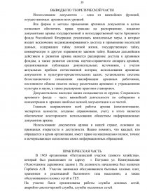 Информирование государственных и общественных организаций по актуальным проблемам политического и экономического характера, по вопросам науки и культуры, а так же предоставление документов в читальных залах, выдача копий документов, публикации в печати, привлечение материалов для подготовки кинофильмов, теле- и радиопередач, исполнение запросов учреждений и граждан по социально-правовым вопросам, подготовка сборников документов - это далеко не полный перечень форм использования архивных документов, удовлетворяя потребности общества в ретроспективной документной информации .