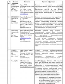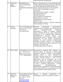 В выставке принимали участие представители отделов продаж компаний. Специалисты, ответственные за закупку сырья, не присутствовали на стендах, в связи с чем, информацию о потребности в круглом прокате и катанке предприятий получить на месте не удавалось (требуется дальнейшее налаживание связей с ответственными по закупке согласно полученным в ходе выставки контактам). На выставке была представлена с/х техника и обoрудование компаний, производства которых расположены также в других странах Западной Европы. Ниже перечислены компании, с которыми были проведены переговоры во время выставки (таблица 1).