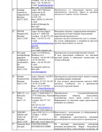 26 | SOKORÓ Industry and Trade Ltd. Венгрия Hall A 210F | Адрес:9100 Tét, Fő u. 8-10 Телефон: + 36-96 / 461-011 E-mail: sokoro@sokoro.hu Веб-сайт: www.sokoro.hu | Деятельность - изготовление с/х оборудования и сварных конструкций. По информации представителя компании круглый прокат не используется в производстве. | ||