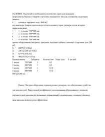 1) Определить установочную площадь под торговую мебель и оборудование в торговой организации, реализующей хлеб и хлебобулочные изделия. Ширина и длина торгового зала 10м*8 м, К ‒ от 0,2 до 0,3. уст = 0,16 (для торговых организаций с площадь до 250 м2.