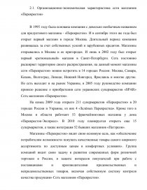 2.1. Организационно-экономическая характеристика сети магазинов «Перекресток»………………………………………………………………...