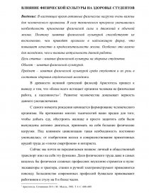Цель статьи – влияние физической культуры на здоровье студентов.