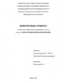 на тему: «КРІОТЕРАПІЯ ЯК ВИД ФІЗИОТЕРАПІЇ»