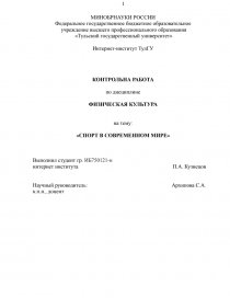 Целью контрольной работы является изучение развития спорта и физической культуры в современном мире.