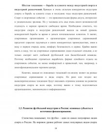1.3. Развитие футбольной индустрии в России: основные субъекты и источники финансирования………………………………………………………………..………….. 14