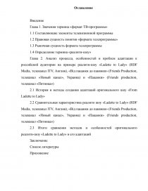 Теоретической основой исследования являются предпосылки возникновения адаптации, анализ терминов формат и телевизионный формат, проблемы адаптации, преимущества адаптации, история и ключевые критерии телевизионной структуры.