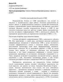 Взаимодействие бизнеса со СМИ многообразно, оно состоит из массовых и индивидуальных форм работы. Успешная коммуникация во многом зависит от профессиональных навыков и умений PR специалистов, которые и организовывают данное взаимодействие. На практике существуют основные (базовые) способы сотрудничества бизнеса и СМИ. К ним относятся следующие виды или, другими словами, формы взаимодействия: система регулярного информирования СМИ о деятельности субъекта PR; мероприятия, организуемые для журналистов и мониторинг СМИ [3, с 15].